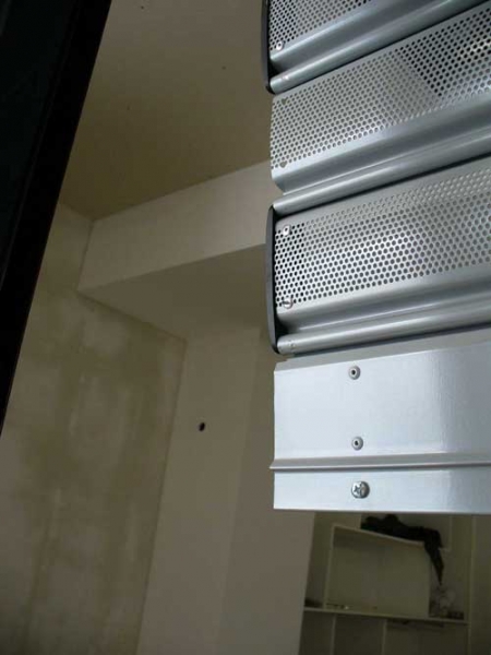Üzlethelység lezárásra- pórszórt (RAL ) felületkezeléssel, lyukperforált fémredőnnyel